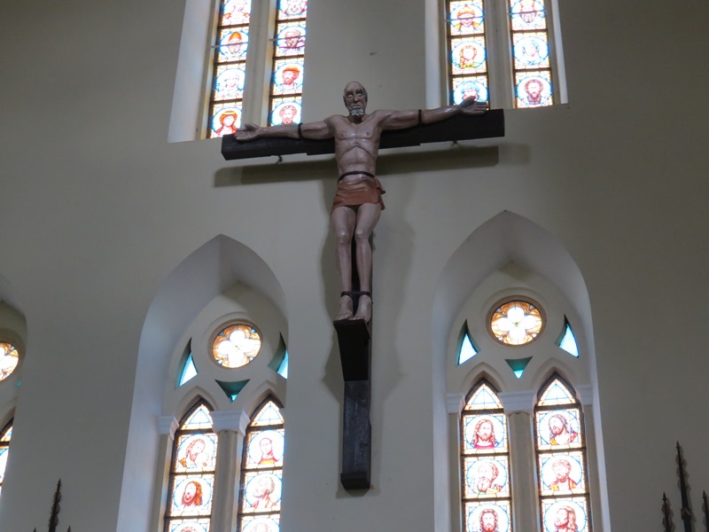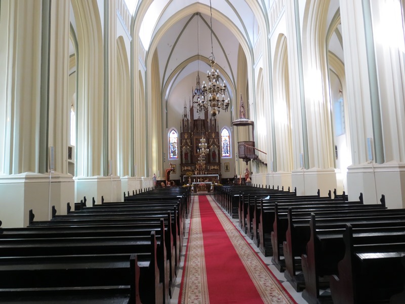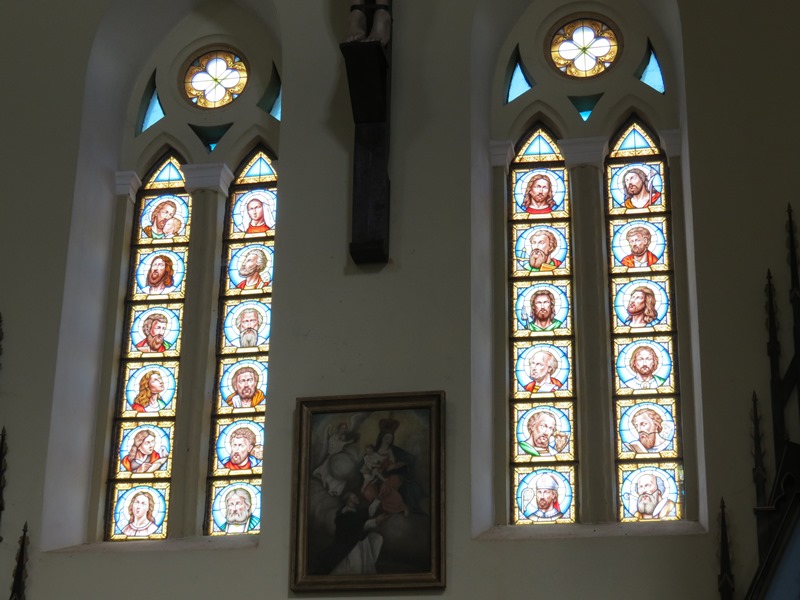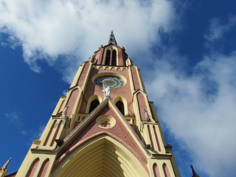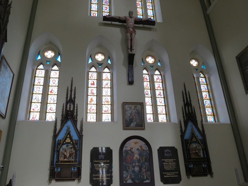 Строительство костела закончилось в 1903 г., а свидетельства о безграничности веры в нем сохранились и сегодня. Здесь нашлось место для изображений и католических, и православных святых. При создании оконных витражей любой человек, независимо от вероисповедания, мог профинансировать это мероприятие, пожелав, чтобы лик его святого заступника оказался на одном из элементов.