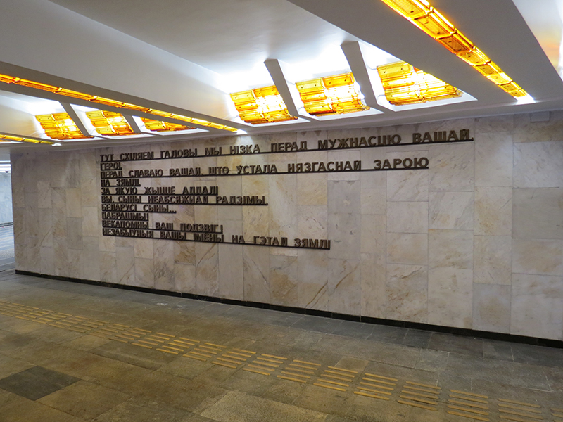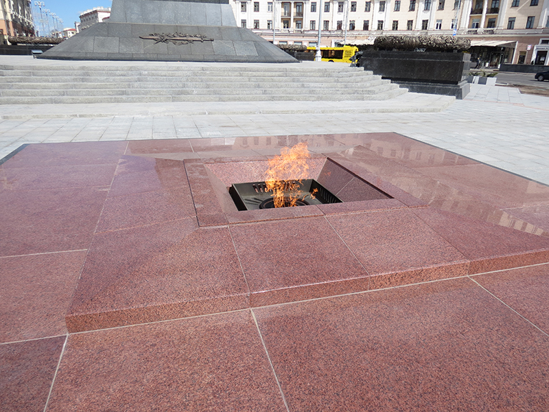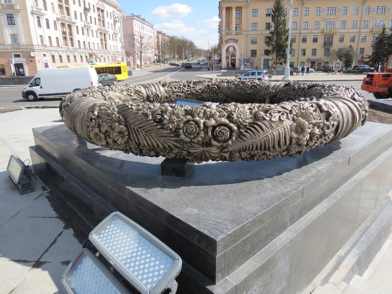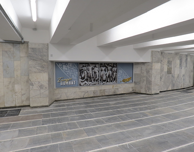 В подземном переходе на Площади Победы сняли последние ограждения, и теперь знаковое место снова стало открытым для посещений. Капитальный ремонт начался в августе прошлого года и осуществлялся усилиями ГПО «Горремавтодор Мингорисполкома», Министерства культуры и ОАО «Белреставрация». Следует отметить, что монумент имеет статус историко-культурной ценности, а потому главным условием при осуществлении строительных работ оставалось сохранение первоначального облика. Практически все реставрационные мероприятия проводились вручную и под надзором научного руководителя. В результате обелиск, не изменив привычных очертаний, приобрел современный вид.