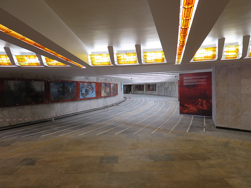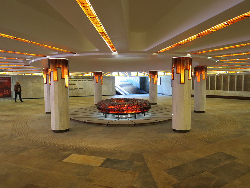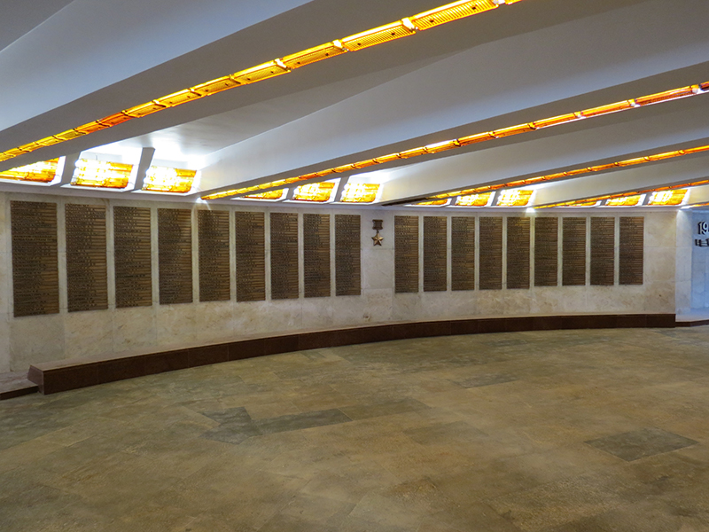 Например, полностью заменено гранитное обрамление и система газоснабжения Вечного огня, установлена новая горелка с автоматизированной системой управления. Выполнена частичная замена внутренних коммуникаций и мраморной облицовки стен и гранитных плит покрытия пола, заменены потолочные светильники, установлены новый подиум из гранита с подсветкой, мультимедийный экран для трансляции тематических видеосюжетов, устроены декоративные информационные экспозиции и др.