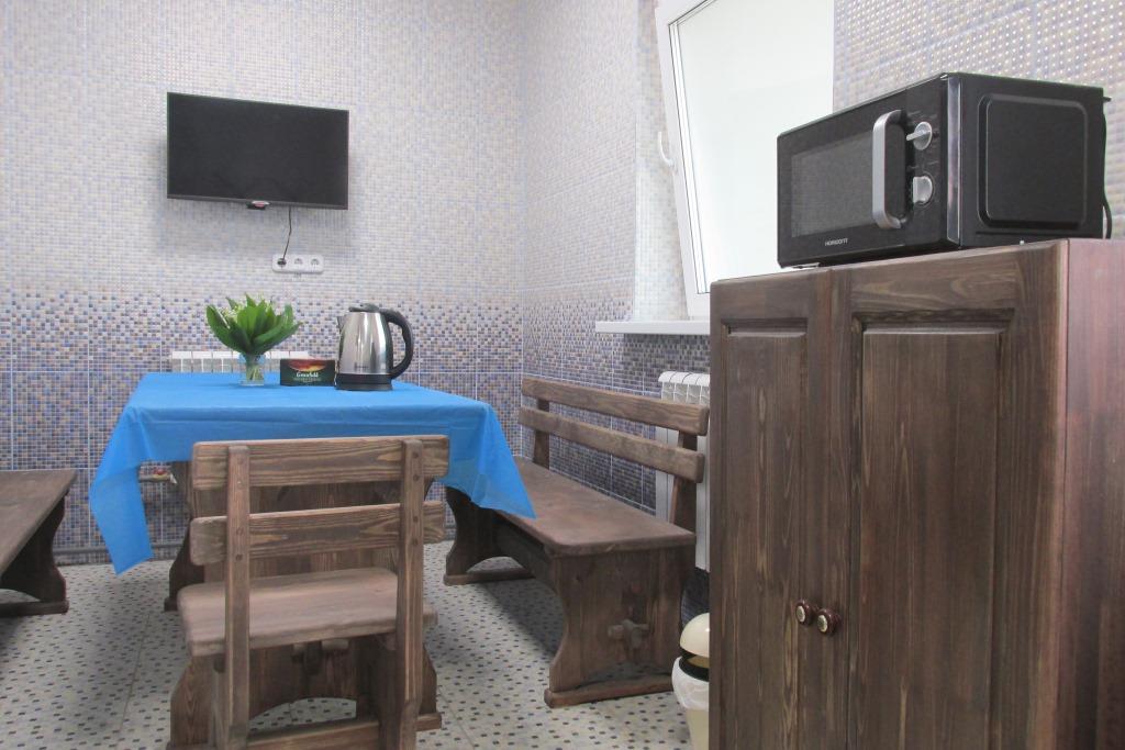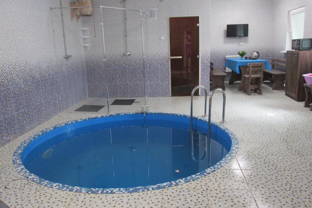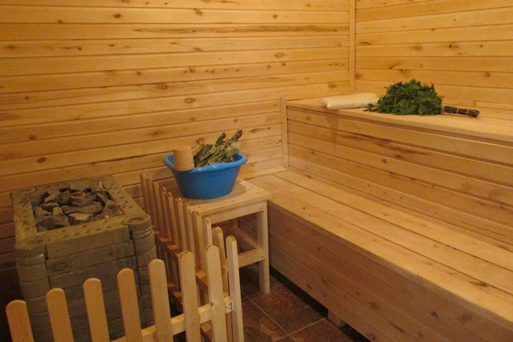 — Современный интерьер, русская парная, прилавок с сопутствующими товарами, круглый бассейн глубиной полтора метра с подсветкой, душ, ведро-перевертыш с холодной водой, комната отдыха, оборудованная банкетным столом, деревянными лавками, телевизором, чайником, микроволновкой, на улице уютная беседка — надлежащие условия для отдыха, — рассказывает мастер банного хозяйства предприятия Елена СОЛОВЬЕВА.